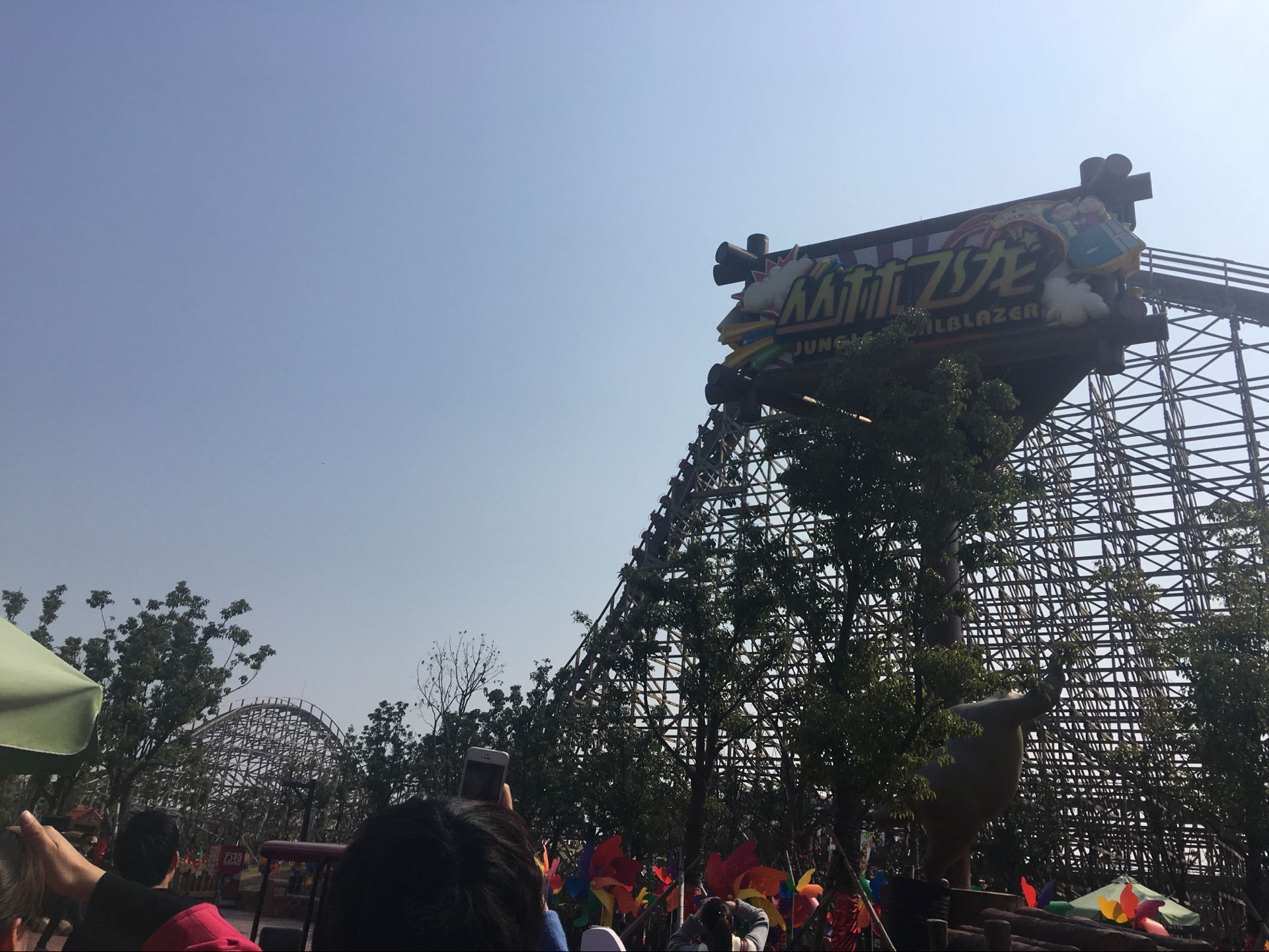 過山車,人家有個(gè)名字叫“叢林飛龍”,我覺得蠻符合的。我不敢玩,看著就心里害怕,我負(fù)責(zé)幫同事帶小孩。